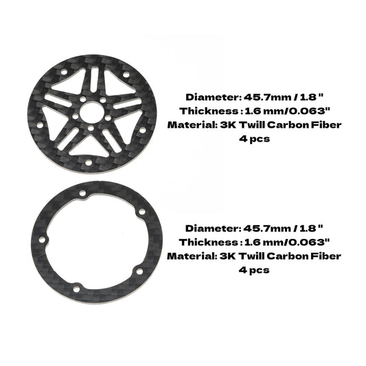 RampCrab 1.8" (46mm) Super Wheels, Carbon Fibre Beadlock Wheels, fit for SCX24, TRX4M, FCX24, CR18P, Style A