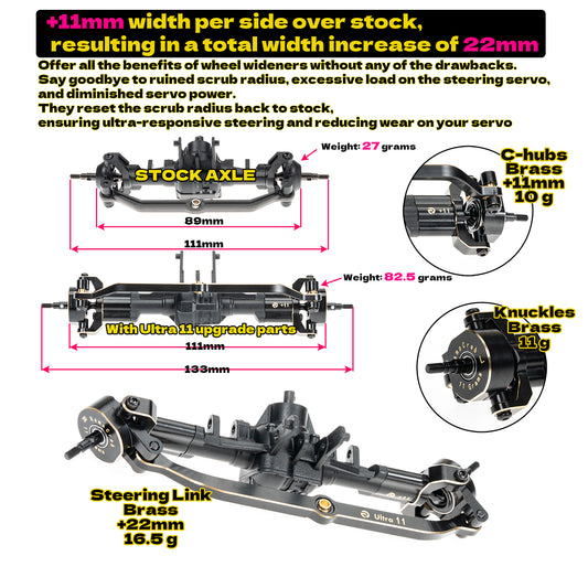 RampCrab Axle widening Upgrade Parts for TRX4M, 11mm Wider on Each Side (Front & Rear), Brass Upgrades Parts for TRX4m RC Crawler Car, Fit for 1/18 TRX4-M Unlimited Trail Buggy, Ultra 11